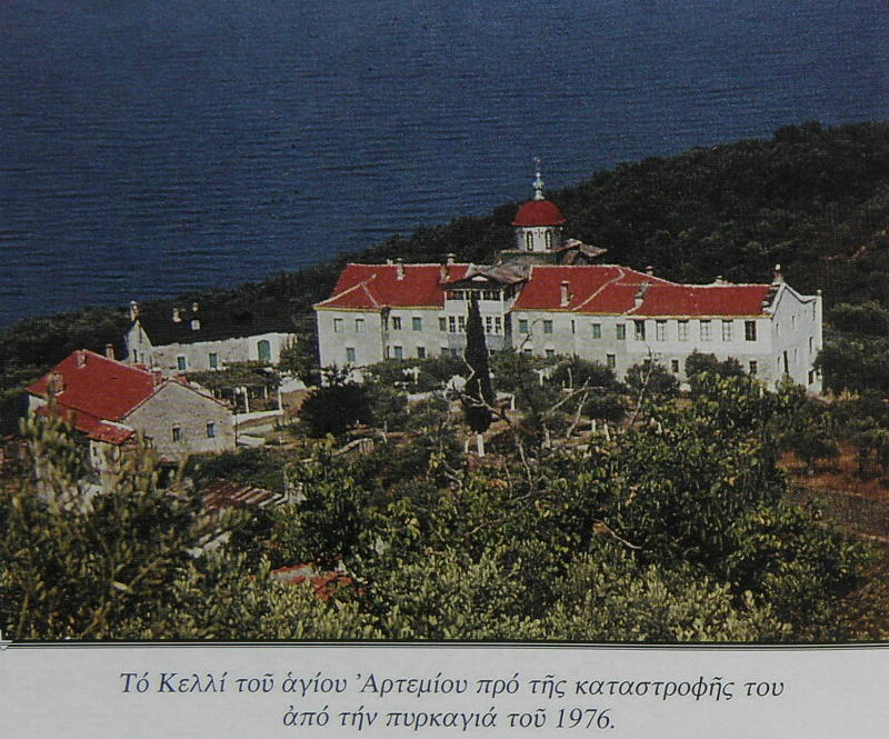 «Εκ των κελλίων τούτων (σημ. της Προβάτας) εν μεν είναι ρωσσικόν, το του αγίου Αρτεμίου, τρία δε ρωμουνικά. Το του αγίου Αρτεμίου, έχον 55 πατέρας, απαρτίζεται εκ μιας μεγάλης πτέρυγος τριωρόφου κατ' ανατολάς μετά μεγάλου Ναού του Αγίου Αρτεμίου και ετέρου της αγίας Σκέπης κάτωθι. Η πτέρυξ αύτη κάμπτουσα προς δυσμάς τείνει να ενωθή προς την δυτικήν πτέρυγα, ούτως ώστε ν' αποτελεσθεί Μονή τετράπλευρος. Κείται δε επί λοφοσειράς μαστειδούς μικρόν άνωθεν του παλαιού κελλίου, ούτινος σώζεται το ναΐδιον, όπερ μέλλουσιν οι εν αγίω Αρτεμίω ν' ανεγείρωσιν εις μεγαλοπρεπή Ναόν μετά Κοιμητηρίου. Διατηρεί δε και νεώριον (αρσανά)μεγαλοπρεπές, ανιδρυθέν εκ βάθρων τω 1894, όπερ αφίσταται αυτού 20΄ και κείται παρά την κεντρικήν οδόν και την διαχωρίζουαν τα όρια των Μονών Λαύρας και Καρακάλλου μεγάλην αλώδη φάραγγα».